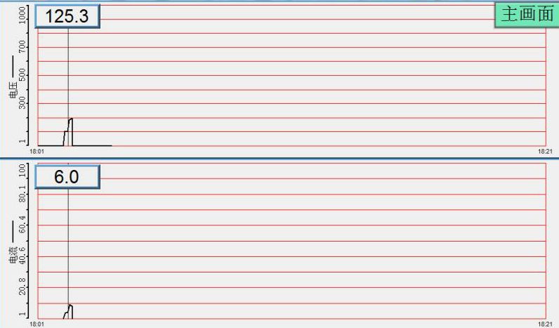 图4-1-3 曲线监控界面 点击右上角“主画面”模拟按钮可返回至操作界面