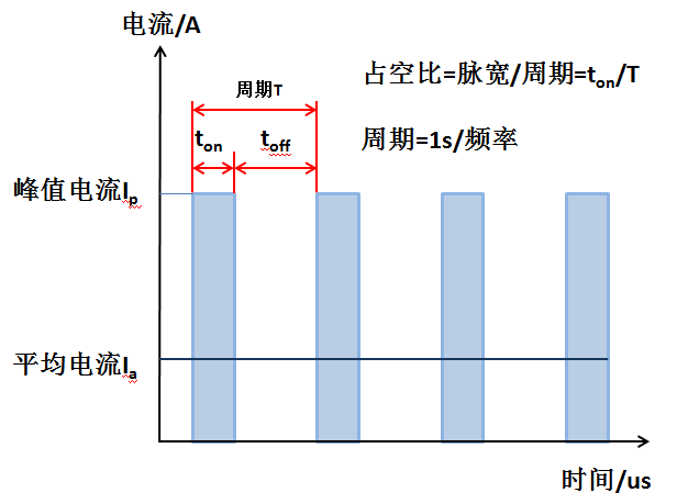 峰值电流、占空比、平均电流、脉宽及频率的换算关系